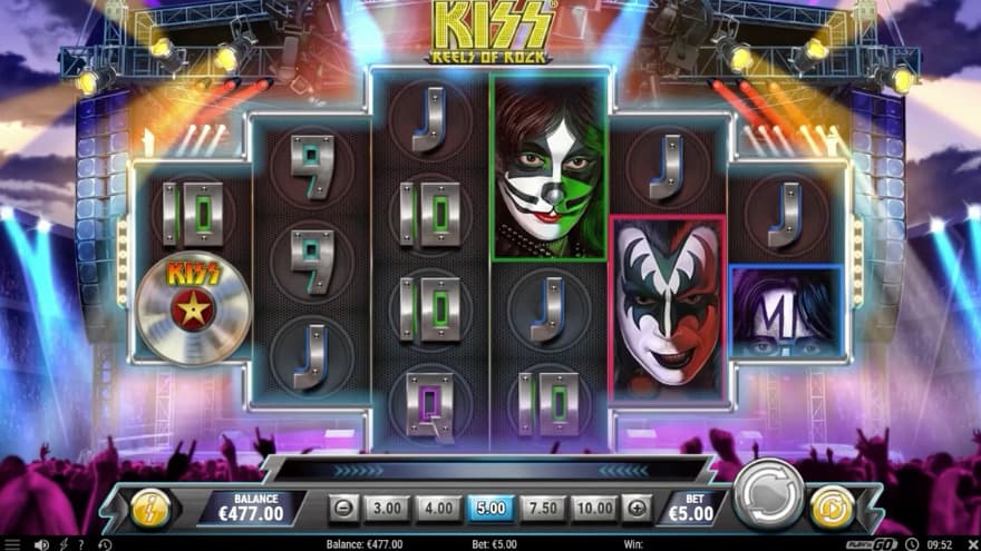 The design of the game is a rock theme with the rock band Kiss playing in the slot. In the background of the reels, you can see the spotlights shining brightly, the crowd waving their hands and a gigantic stage where the reels are placed. You can play this slot on all the device’s notepads, desktops, and mobiles. You create a winning combination by landing 3 or more of the same symbol types on adjacent reels starting at the far left.