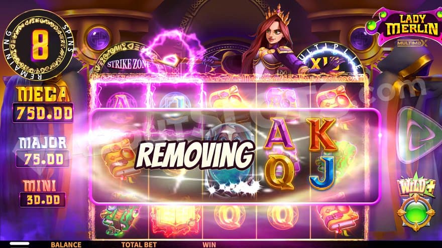 Lady Merlin MultiMax is a new casino slot from Boomerang Studios featuring the electric lady from Lady Merlin Lightning Chase. This sparkling woman conducts magic that turns power into prizes. She serves the player multipliers, extra bonus symbols, and second chances on losing spins by removing all lower-paying symbols. The MultiMax mechanic increases the multiplier by 1 for every wild symbol, and it doesn’t reset during free spins. Let Lady Merlin teach you everything about turning electricity into gold.