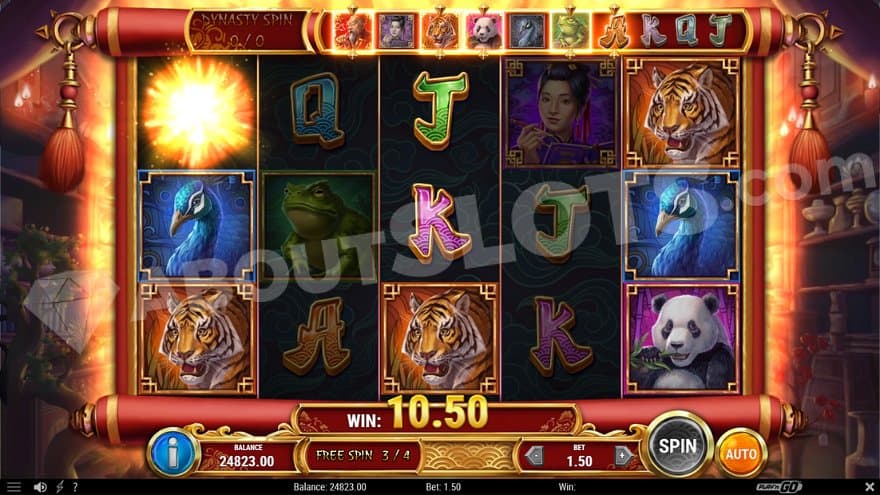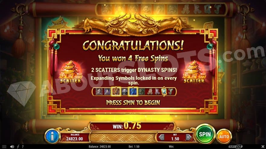 Landing 2 Scatter Symbols during the feature will trigger the Dynasty Spins.