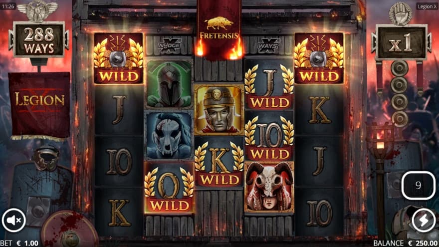Within this epic battle that we are taking part in with the Roman Legion, we can manage to scoop up some big wins with the help of a bunch of great features. The features are xNudge Wilds, Infectious Wild, xWays, Legion X Spins, Legion X Equestris Spins, Legion X Fretensis Spins, Legion X Gemina Spins and Bonus Buy.