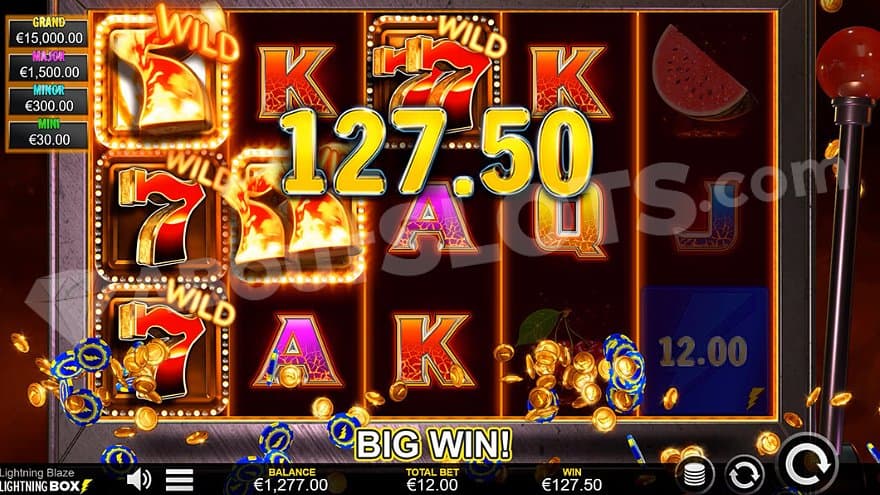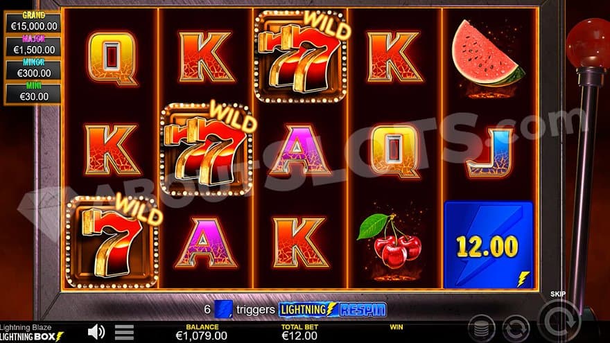 Lightning Blaze is a new casino slot from Lightning Box with a basic 3x5 setup and classic fruit symbols. It has the Lightning Respin feature, previously seen in games such as Lightning Gorilla. Cash value scatter symbols worth up to 100X the bet will appear during the feature, resetting the spins every time they land. You’ll also find Jackpot scatters, paying up to 1250X the bet. Players can expect to scope up some sweet wins even in the base game, which contains wild symbols multiplying wins up to 12X the bet. Let’s find out everything else you need to know.