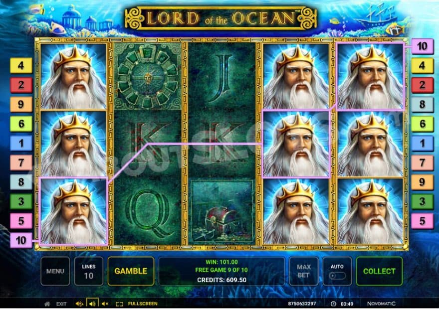 Lord of the Ocean is a video slot in classic style where the Greek god Poseidon helps you look for underwater treasures.