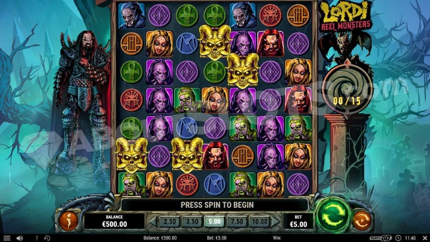The design of the game is a heavy metal theme, where we get to enjoy a gaming experience with the rock band Lordi. In the background of the reels you can see a foggy cemetery, where the singer Mr.Lordi appears to the left of the reels. You can play this slot on all the devices mobiles, notepads and desktops. You create a winning combination by landing 5 or more of the same symbol type in a cluster, which then activates the Cascade feature.