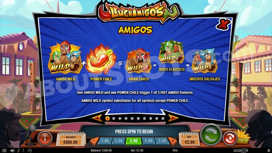 When entering the wrestling ring, don’t miss the features Wild Symbol, Power Chile, Hot Amigo, and Power Chile Free Spins.