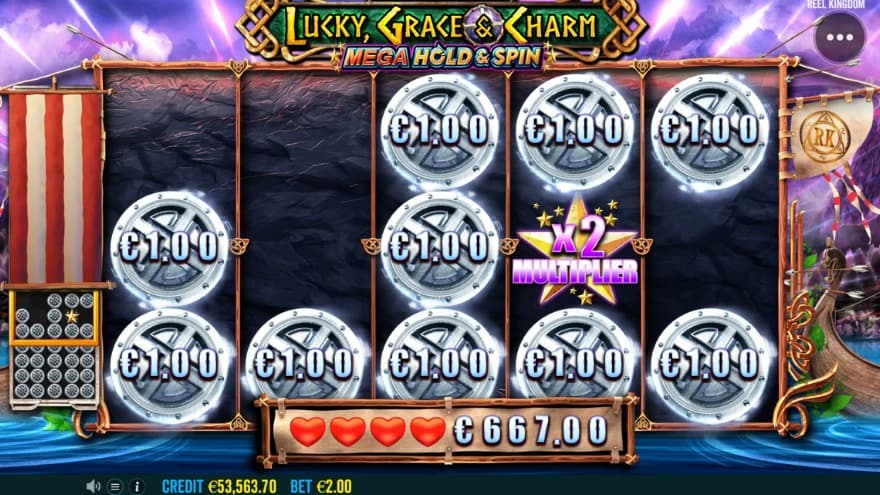 Lucky, Grace & Charm is a new casino slot from Reel Kingdom, where we travel back to the Viking Age. It is a place where we, together with these three mighty Vikings, fight and plunder for the really big wins. It is up to 10000X the bet that can be scooped up and it is mostly with the help of the Mega Hold & Spin mechanic's fantastic properties.