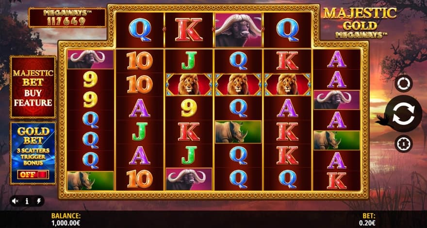 Majestic Gold Megaways is a slot from iSoftBet where, along with the mightiest animals on the African savannah, we take part in an intense gaming experience on a slot that is filled with great features.