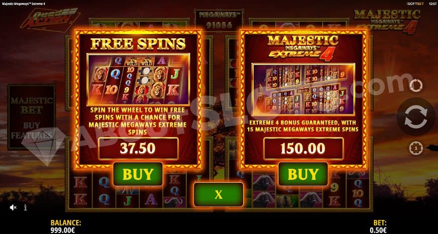You can pay 75X the bet to activate the Bonus Wheel that will award one of the two free spins features. Paying 300X the bet will take you straight to the Majestic Megaways Extreme Spins.