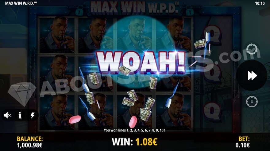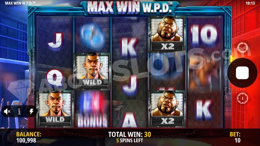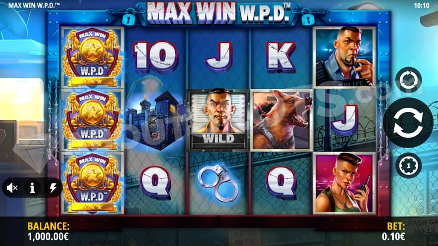MAX WIN W.P.D is a police slot where wild criminals turn sticky and multiply wins by up to 3X in the free spins.