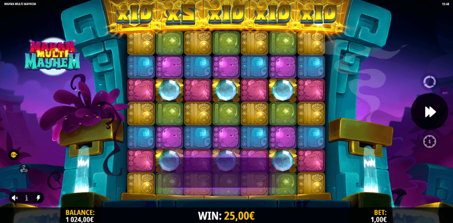 Mayan Multi Mayhem is a game with a max win of 20,000x the bet, where you venture right into the Mayan civilization in search of riches!