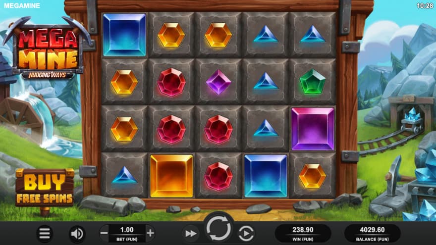 Mega Mine Nudging Ways is a slot where we meet a miner who through the Mystery Nudging Stacks can help us scoop up gigantic winnings.
