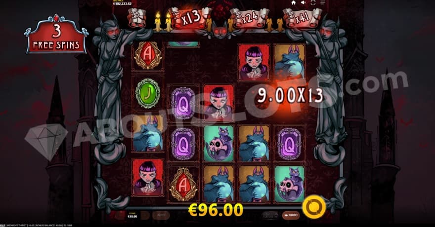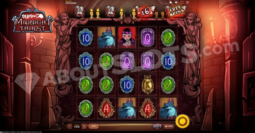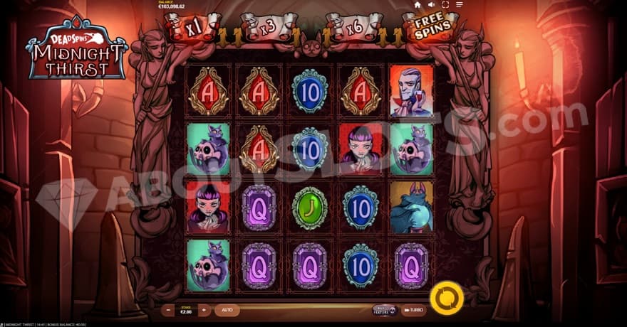 As mentioned, a unique mechanic is on the table. The features of Midnight Thirst are Dead Spin Progress Bar, Free Spins, and Bonus Buy.