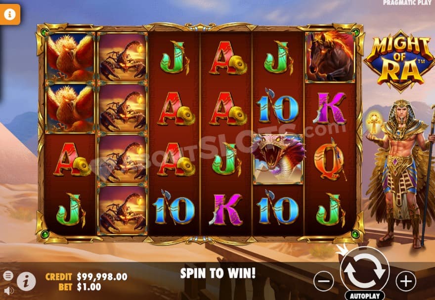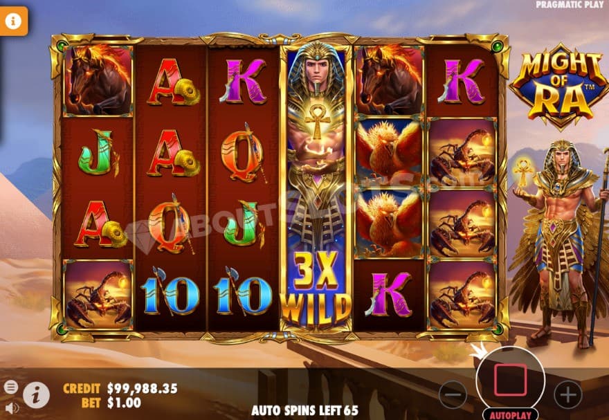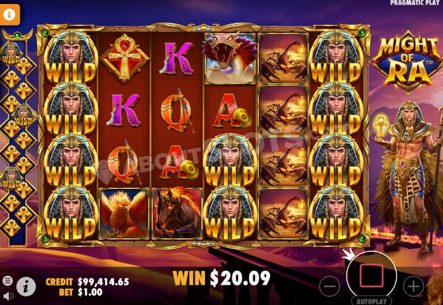 Might of Ra is a slot where we can collect large amounts of Ankh symbols along with this sun god, which in turn result in reel strips being filled up with wild symbols.