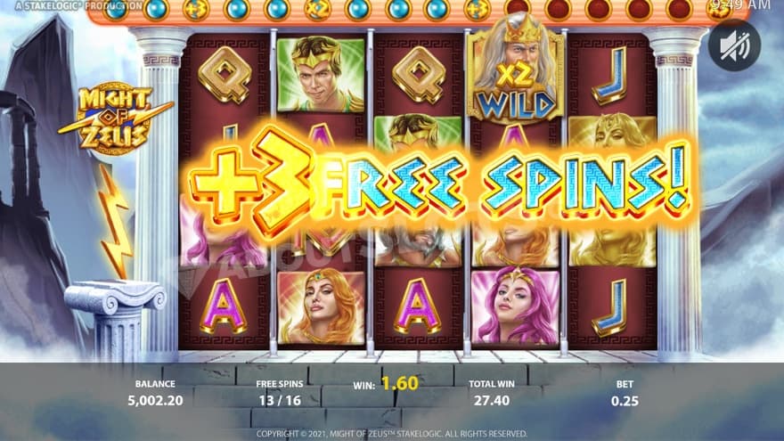 The game's Zeus wild symbol helps create more winning combinations by substituting for other paying symbols.