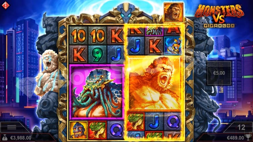 The game's design features a monster theme, where we meet a couple of legendary characters who, despite all the options, have chosen to fight in the middle of a big city. In the background of the reels, you can see burning skyscrapers, where an intense and action-packed music is played during the spins. You can play this slot on all the devices notepads, desktops and mobiles. You create a winning combination by landing 3 or more of the same symbol type on adjacent reels starting at the far left.