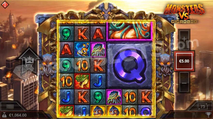 Like the Megaways mechanic, the Gigablox mechanic is becoming an increasingly common mechanic among slots. Its ability to deliver gigantic symbols, which in this case can be up to 6X6 in size, can many times result in sudden bonanzas. That these also can display scatter and wild symbols makes it all even better. It's a slot that has had a fantastic design created for it and its theme is certainly action packed. The fact that they have added Godzilla, King Kong and Cthulu among others certainly results in an entertaining cocktail of characters that can land on the reels during the spins.