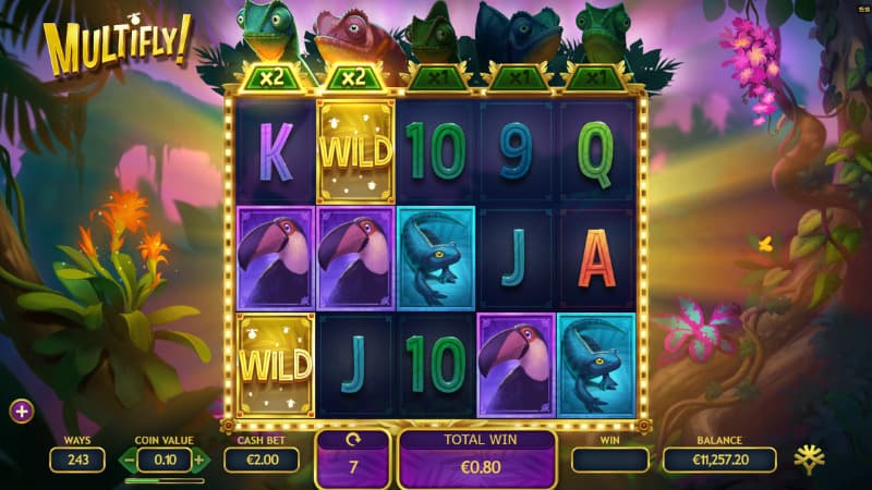 With Multifly!, Yggdrasil here comes with a slot with a jungle theme. Deep in the dense jungle, there is a slot that sits on fine winnings. Here you play on a slot with 5 reels, 3 rows and 243 paylines. You can choose to do a bet between a Min.bet of 0.10 and a Max.bet of 75. Like most slots from Yggdrasil, it is a generous RTP, where we in this slot have RTP of 96.3%, which is slightly above average. We have a high volatility here, where it can take a while before you manage to access the slightly larger wins. But the patient soul can manage to scoop up a really great max win, namely 10'512 X the amount you bet.
