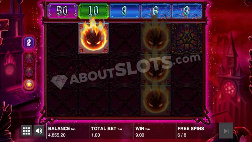 During this bonus game, you can only obtain wins through the instant prize slab, where your progress on these stays between the spins being made. You can land wild scatter, fireball, multiplier fireball and dud symbols. It is required that you land 3 fireballs for you to receive an instant prize.
