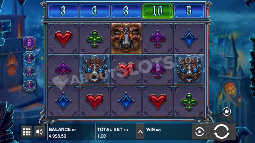 The design of the game is a gothic, dark, gargoyle theme, where we find ourselves in a scary place during the night. In the background of the reels, you can see large buildings in the gothic architecture, where a fog has settled over the city and at times you can see large bats flying by. The rock music that is played helps to create the perfect game mood for this theme. You can play this slot on all the devices notepads, desktops and mobiles. You create a winning combination by landing 3 or more of the same symbol type on adjacent positions starting at the far left.