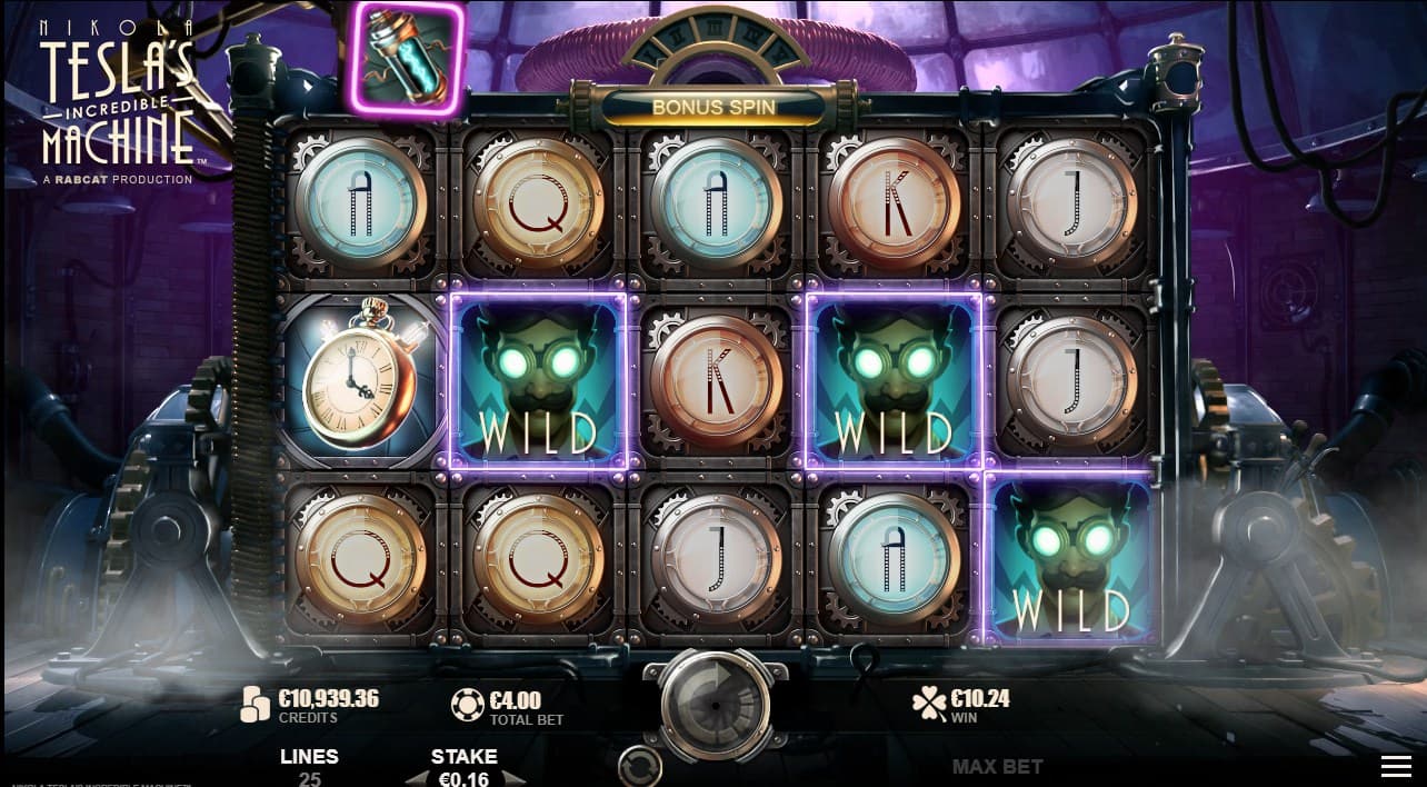 Throughout years, Nikola Tesla worked on many inventions which he later patented. He also conducted a variety of experiments related to generators, oscillators and more which definitely inspired the Nikola Tesla’s Incredible Machine slot. The game comes packed with 5 reels and 25 paylines with some electrifying winnings offered that are worth up to 4,100x players’ stake.