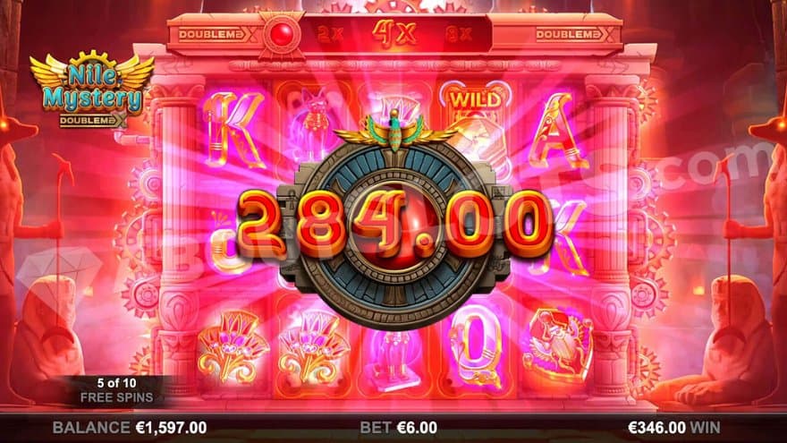 Nile Mystery DoubleMax is a video slot from Hot Rise Games with 5 reels, 3 rows, and 243 ways to win. The Min.bet is 0.3, and the max bet is 12. The default RTP is set to 96.08%, but you can also come across versions of 94%, 90.5%, and 86%. Nile Mystery DoubleMax has high volatility and a max win of 20,000X the bet. With a hit frequency of 32.16%, about 3 spins of 10 are winners, and a feature hits 1 time in 152 spins.