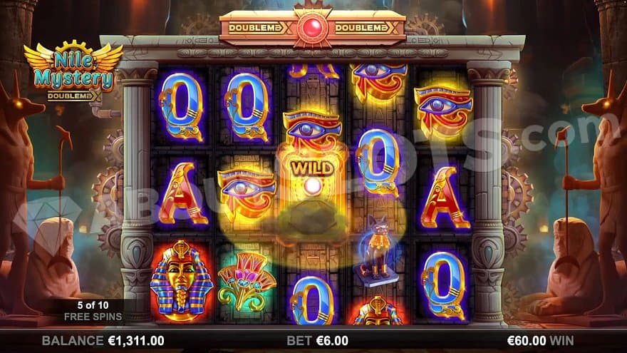 Stepping into the realm of Nile Mystery DoubleMax is like embarking on an adventure through the sands of ancient Egypt. Picture yourself amidst the dunes, surrounded by sand-colored buildings. Amidst this desert landscape, the promise of riches gleams like a mirage in the distance, beckoning players to take a spin and discover treasures beyond their wildest dreams.