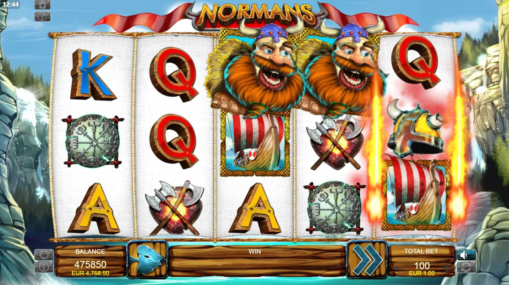 In order to scoop winning combos, players need to hit at least three matching symbols on a payline set against a very colorful bay. Players should definitely keep an eye on the game’s wild symbols as these may appear on the reels with rewarding multipliers. Moreover, these wilds can also be held on the reels so that players have a better winning opportunity. Besides these standard wild symbols, the Normans slot also comes packed with Great Wild symbols which as suggested are bigger symbols that occupy two reels.