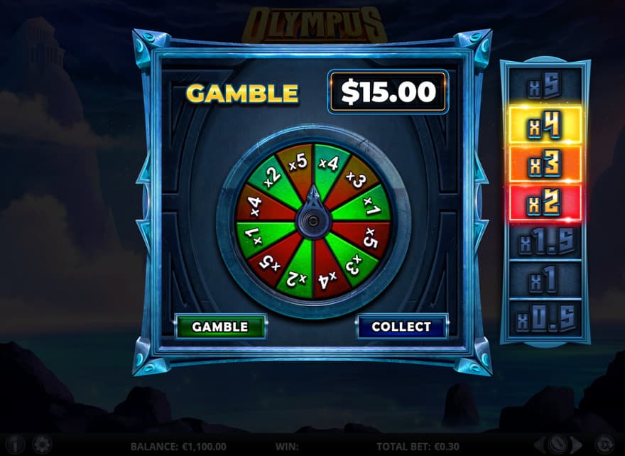 How much can you win in the Olympus Infinity Reels slot? You can win 1845X during the spins and with the help of the Gamble feature the winnings can be up to 10000X the bet.