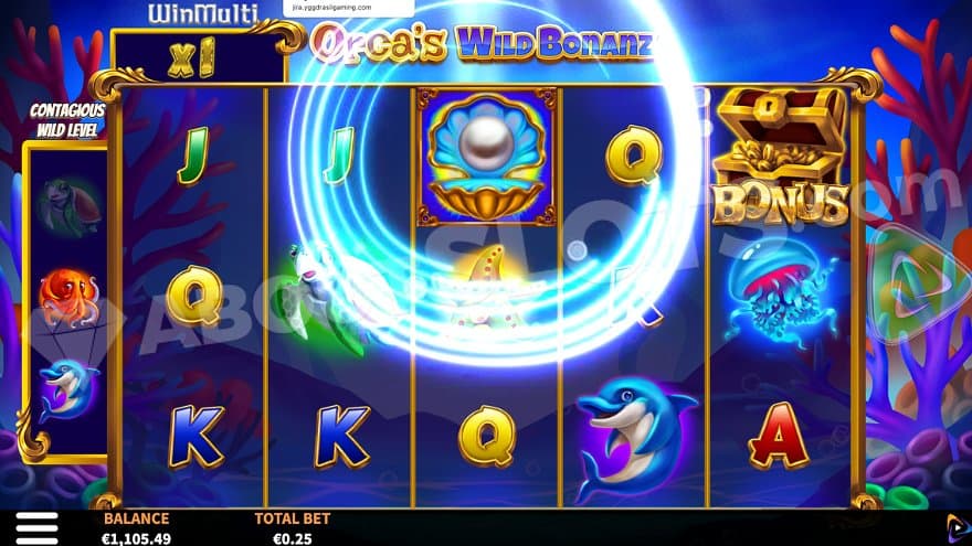 Among orcas and other sea animals, await the features Wild Symbol, Cascading Wins, WinMulti, Contagious Wild Feature, and Free Spins.