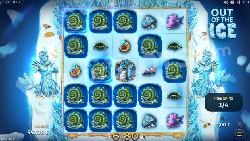 Out of the Ice is a new casino slot from Print Studios where we head to an ice filled place among exciting creatures. Among them we have the Merfolks which are water-dwelling human-like beings that originate from folklore from various parts of the world. These fascinating creatures have can be described as very beautiful or ugly, where their ability to live under water, has made them very popular to talk about within stories. Print Studios made a great start of their career in 2021, where they launched the slot Crystal Golem, which with the help of its exciting and innovative features caught the attention of players immediately. At a quick glance, you can see that the potential maximum win this time is 6000X, unlike the previously mentioned version which had 20758X the bet. Let's visit this enchanting site and find out what you can expect to see during the spins.