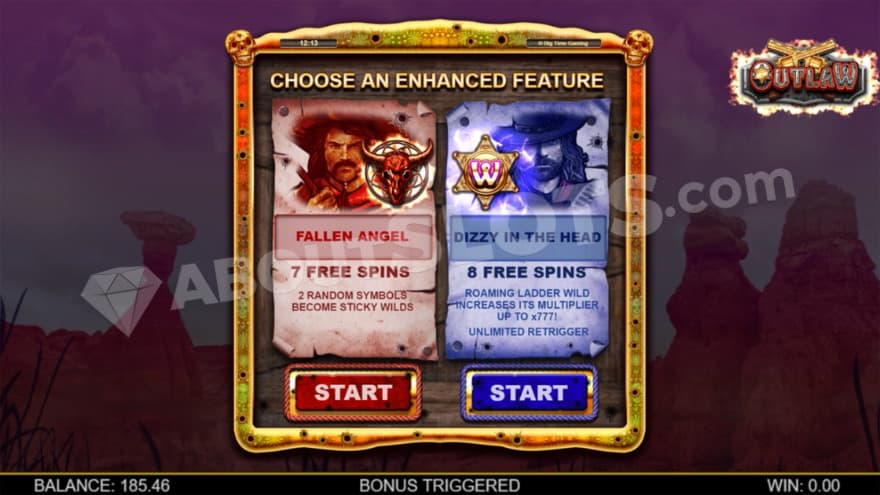 The big change that has been made feature wise, is the addition of the Megaways mechanic which can give up to 117649 ways to win and although it doesn't come with a cascading effect to this, it's a lovely addition. The random full reel wilds that can land help the base game spins to occasionally offer great wins, with the sheriff wild having a multiplier of 7X applied to wins that it is included within. The real adventure however starts when you activate the bonus game, where you can once again manage to activate an enhanced bonus game that comes loaded with lucrative boosts. Players who prefer sticky wilds will quickly click in the option Fallen Angel, where players looking for a potential to land huge win multiplier will choose the option Dizzy in the Head.