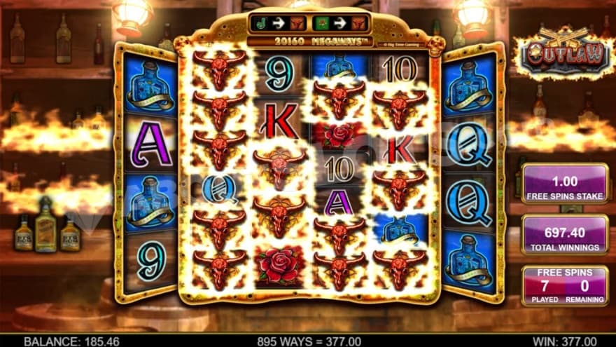 During your spins, full reel wilds can land on the reels 2 to 5, whereby the outlaw wild acts like a normal wild and the sheriff wild has a multiplier of 7X applied to the win it is part of.