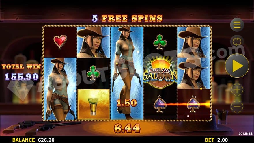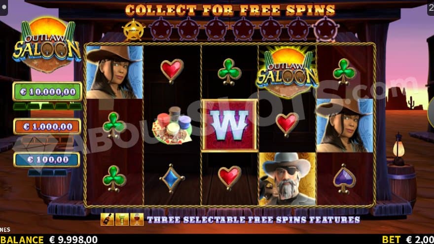 Outlaw Saloon is a video slot from Gold Coin Studios with 5 reels, 3 rows, and 20 paylines. The Min.bet is 0.2, and the Max.bet is 25. You shoot yourself through by spinning the reels to an RTP of 96.00%. Outlaw Saloon has high volatility and a max win of 10000X the bet.