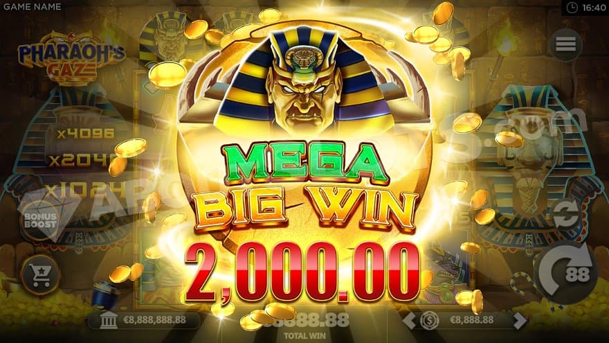 Paying 25% extra of the base bet doubles your chances of triggering the free spins, a pretty good option for many players. You should also look out for the small gems that trigger the Pharaoh's Gaze, a feature that guarantees 1-3 Wilds for the following 3 spins. The RTP of 96.1% is about average for casino slots, and the max win of 15000X the bet is another reason to spin the Pharaoh's reels.