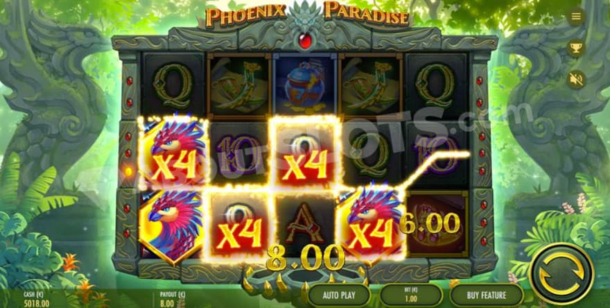 These Phoenix birds have certainly chosen an excellent spot deep in the jungle, where its lush forest and harmonious sounds will put you in a good mood quickly. The game has received a sharp and captivating design, where its beautiful details give the game a heightened and luxurious feel. Just as expected, this is a place where you can encounter many of these glamorous birds, where they are the game's wild symbols. They come with different properties, but one that is common to all is their ability to substitute for other symbols and be able to create more winning combinations.