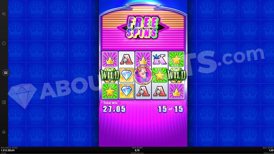 The free spins are activated by landing the Queen pig on reels 3, 4, and 5. You start the feature with 15 spins, and you can win 15 new ones by landing 3 more scatters. The feature is over when the player runs out of spins.