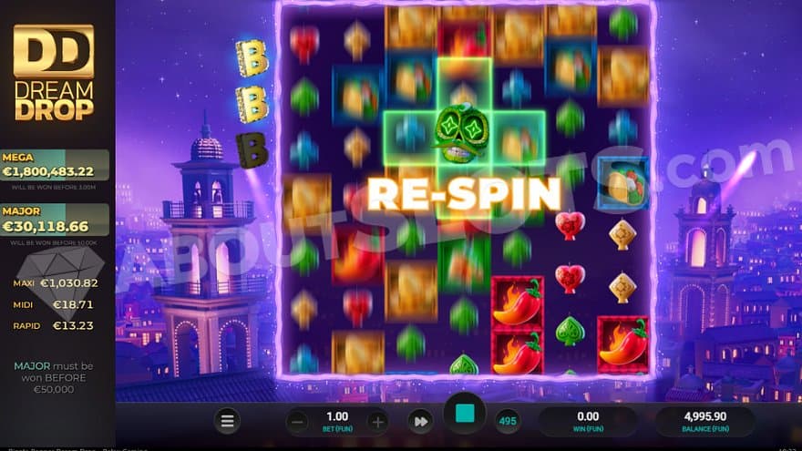 As soon as a piñata lands, you know there will be an explosion. This game has packed together a cool mix of features such as Re-Spins, Piñatas, Bonus Game, and Dream Drop Jackpot Game.