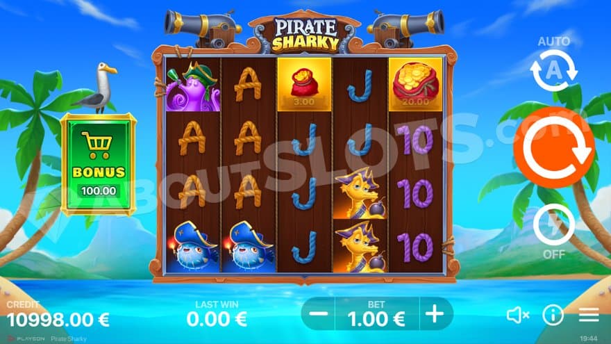 Pirate Sharky is a video slot from Playson with 5 reels, 4 rows, and 12 paylines. The Min.bet is 0.2, and the Max.bet is 100. The game has an RTP of 96.10% and very high volatility, which means that you can win and lose money fast. Playing the perfect game can result in the max win 20000X the bet.