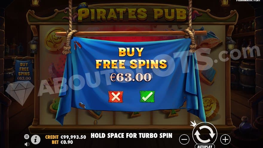 Pirates Pub is a video slot from Pragmatic Play with 5 reels, 3 rows, and 9 paylines. Because of the uneven number of paylines, you can’t make bets as 1 or 2. The Min.bet starts at 0.09, and the Max.bet is set to 99. The game’s default RTP is 96.03%, but it is also available at 94.94% and 94.02%. You can expect a lot to happen in this highly volatile game where the max win is capped at 5,000X the bet.
