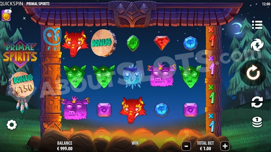 Primal Spirits is a video slot from Quickspin with 5 reels, 3 rows, and 25 paylines. The Min.bet is 0.25, and the Max.bet is 100. The RTP is 96.02%, but be aware that there are two other versions, with RTP of 94.19% and 87.15%. Primal Spirits has high volatility and a max win of 8623X the bet.