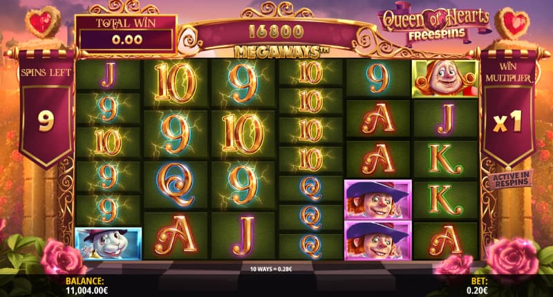 In this fabulous world we meet the queen of wonderland. Where we through the slots Megaways mechanic can get up to 117'649 paylines. We get to take part in a classic fast-paced action, because here cascading wins apply. This is a feature that can create a rain of symbols. With each win you make, its winning combinations will disappear, then new symbols will rain down to fill the empty positions created. This will continue until no new winning combination is created. When this feature is running, it usually becomes a delight to the eyes, as one's wins only continues to increase.