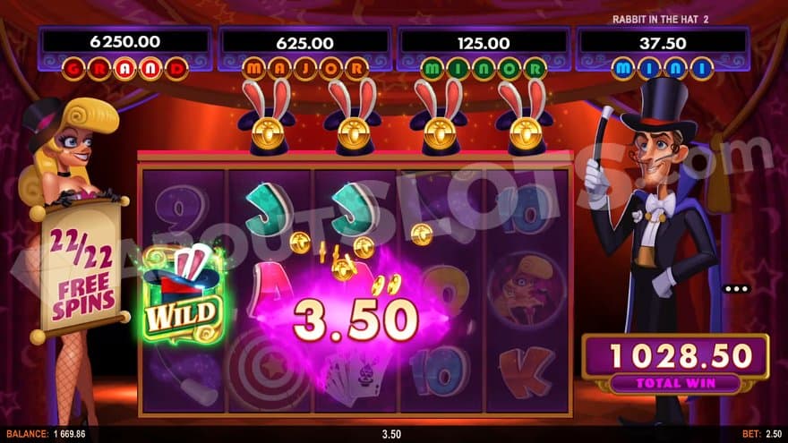 One of the standout features in both versions is the Hat Feature. It has also been upgraded, and you will now find 5 different sorts of hats instead of 4. They are placed over the reels by the magician and move one step to the left on every spin. As soon as a Wild Symbol lands on a reel that has a hat above it, the hat will pay its price, such as extra Scatter Symbols, Wild Multipliers, Wild Reels, and Walking Wild Reels.