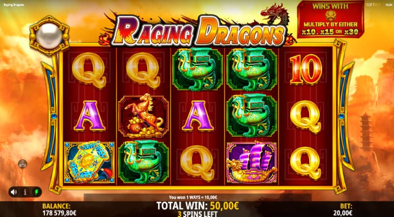 With Raging Dragons, iSoftBet here comes with a slot that is placed in a mysterious location. Where the dragons reign and the lucky one can manage to bring home big wins. You play here on a slot that has 5 reels, 3 rows and 243 paylines. Where you can choose between making a Min.bet of 0.20 and a Max.bet of 20. The game's RTP is 96% and is around the average. Of course, staying in a place where there are a lot of different dragons is not risk-free. This slot has a high volatility, but the patient player can manage to bring home a really big maximum win. Here the maximum win is 12150X the amount you bet.