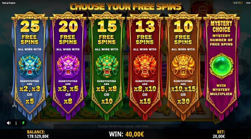 You can also make a Mystery choice here. What happens then is that you will get a random number of free spins awarded and the same applies to the wild multiplier. It is one of the values that the other options have that you can take part of.