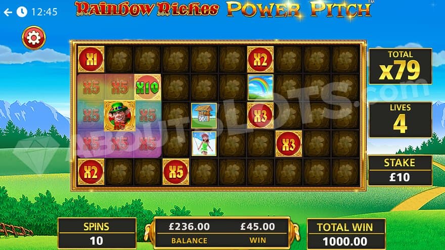 There aren’t many features in Rainbow Riches Power Pitch, but the few are surprisingly nice, especially the Power Pitch feature. It gives us a respins session on a vastly expanded reel set. It’s pretty easy to follow, despite all the new things that are introduced. It’s also where you can land the game’s max win of 10000X the bet. The RTP of 96% is acceptable but nothing to brag about.