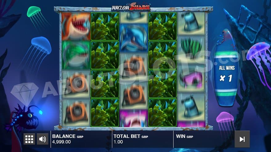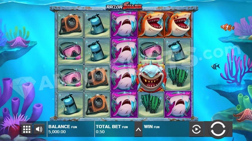 This is a highly volatile game where a lot can happen. An excellent turnout in the free games is what everyone is hoping for, but there are chances for big wins in the base game too. The high volatility makes the game unpredictable, and you might also end up with nothing in the free spins, just to make a big win in the base game a few spins later. You can, for example, land a 2500X win on the Razor Reveal – golden sharks are just too kind sometimes.