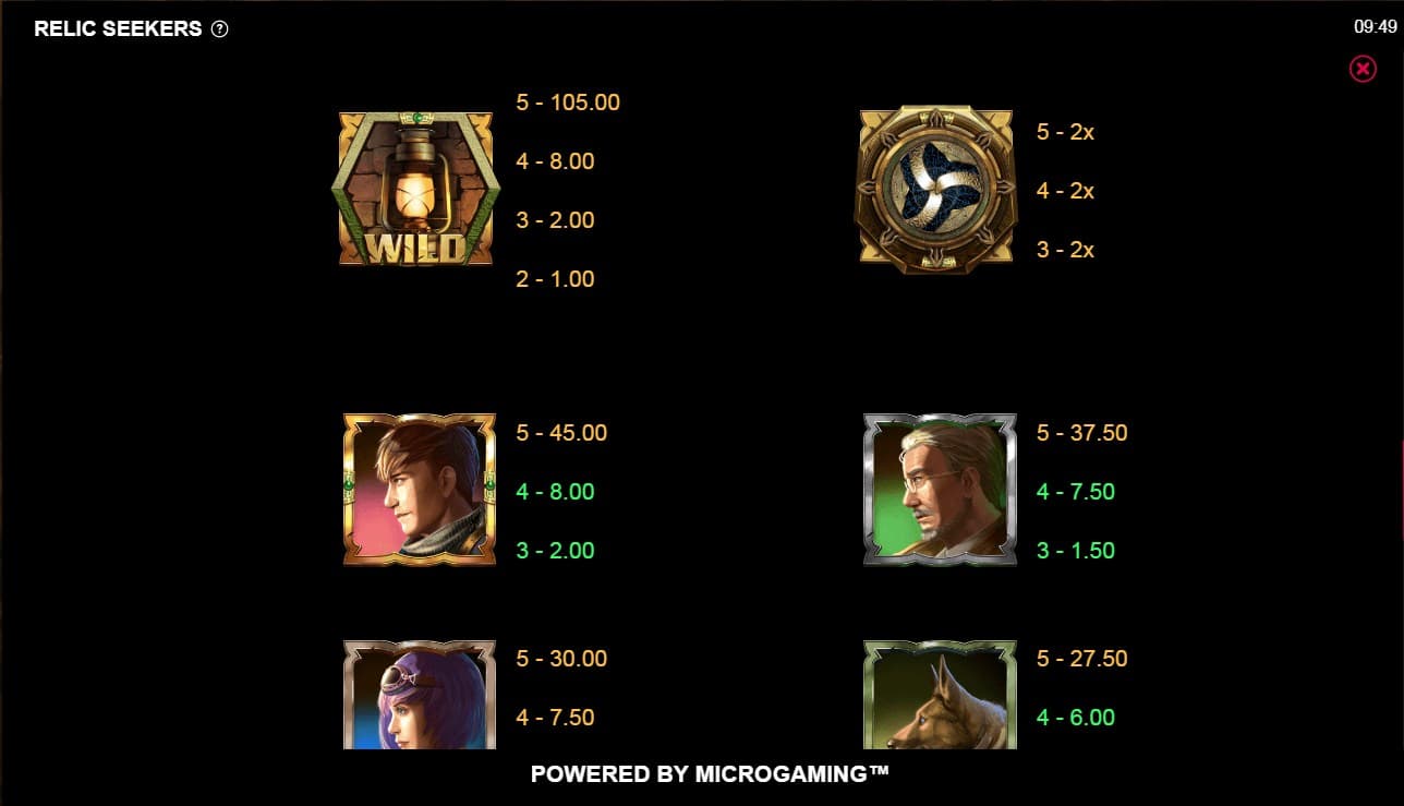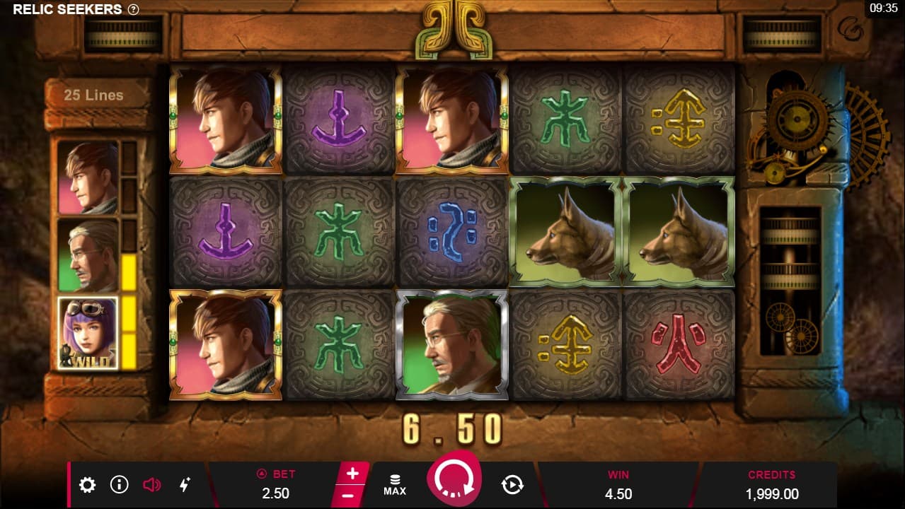 As suggested by the slot's name, the Relic Seekers slot is a remarkable, adventurous game in which players join a trio of experts in archeology on their journey. The adventurers guiding players in the Relic Seekers slot include Nora, Professors Morgan, and Free Man. The game boasts a standard gaming layout including 5 reels and 25 paylines.