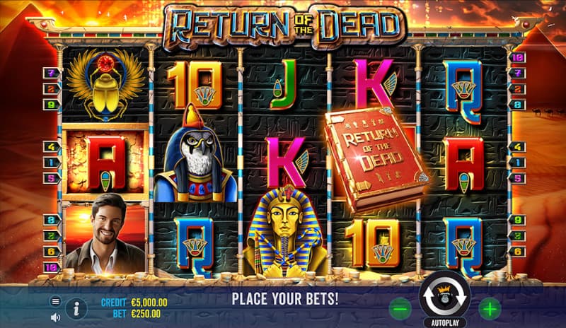 With Return of the Dead, Pragmatic Play here comes with an adventurous slot. Where it takes place in Egypt among its many different gods. You play on a slot that has 5 reels, 3 rows and 10 paylines. You can choose between making a Min.bet of 0.10 and a Max.bet of 250. The game has an RTP that is slightly above average, here we have an RTP of 96.71% and a high volatility. You who play here can succeed in winning really big wins. Since the total max win is 5000X the amount you bet, with a Max.bet of 250, it can be an incredible € 1'250'000.