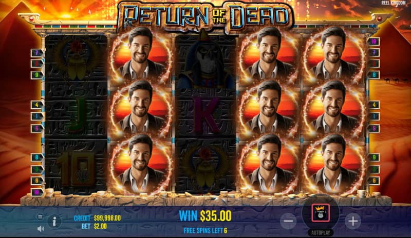 In this slot, Return of the Dead, we once again get to follow the treasure-seeking adventurer. Where it this time takes place in Egypt. It is a slot that has high volatility, but where you can also succeed in winning big. With a maximum win of 5000X the amount you bet, which can be a Max.bet of 250. Here is the bonus game you want to take part in, as it can give you many wonderful free spins along with these special expanding symbols that further increase your chances of winning. Do you have the adventurer within you and are ready to head to Egypt to look for its great treasures?