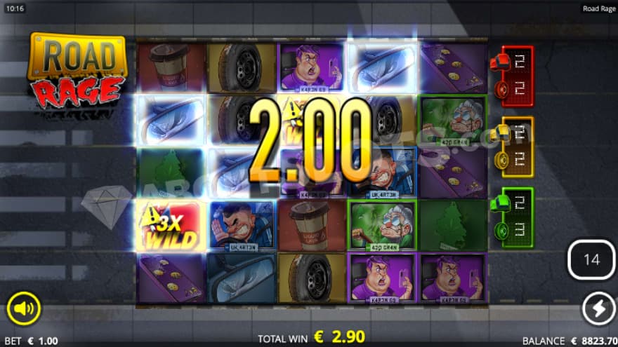 Once you have successfully activated one of the bonus modes, the rage buff feature will first be triggered. This will determine the number of spins and the size of the multiplier that the wild cars will have. It all starts with the wild cars landing on the last reel and then moving horizontally across the reels, where it can pass various road sign symbols that are applied to it. The different road sign symbols are and do the following: