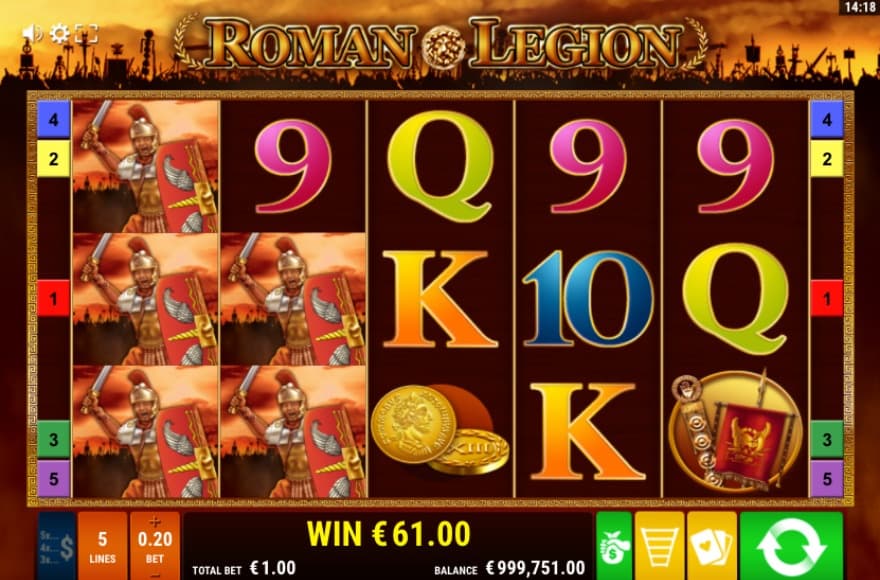 The design of the game is a Roman theme, where we follow the Roman Legion in the quest for big wins. In the background of the slot, you can see a red/yellow fog along with silhouettes of several people from this army, with swords and battle flags held high. You can play this slot on all the device’s notepads, desktops and mobiles. You create a winning combination by landing 3 or more of the same symbol types on adjacent positions starting at the leftmost position.
